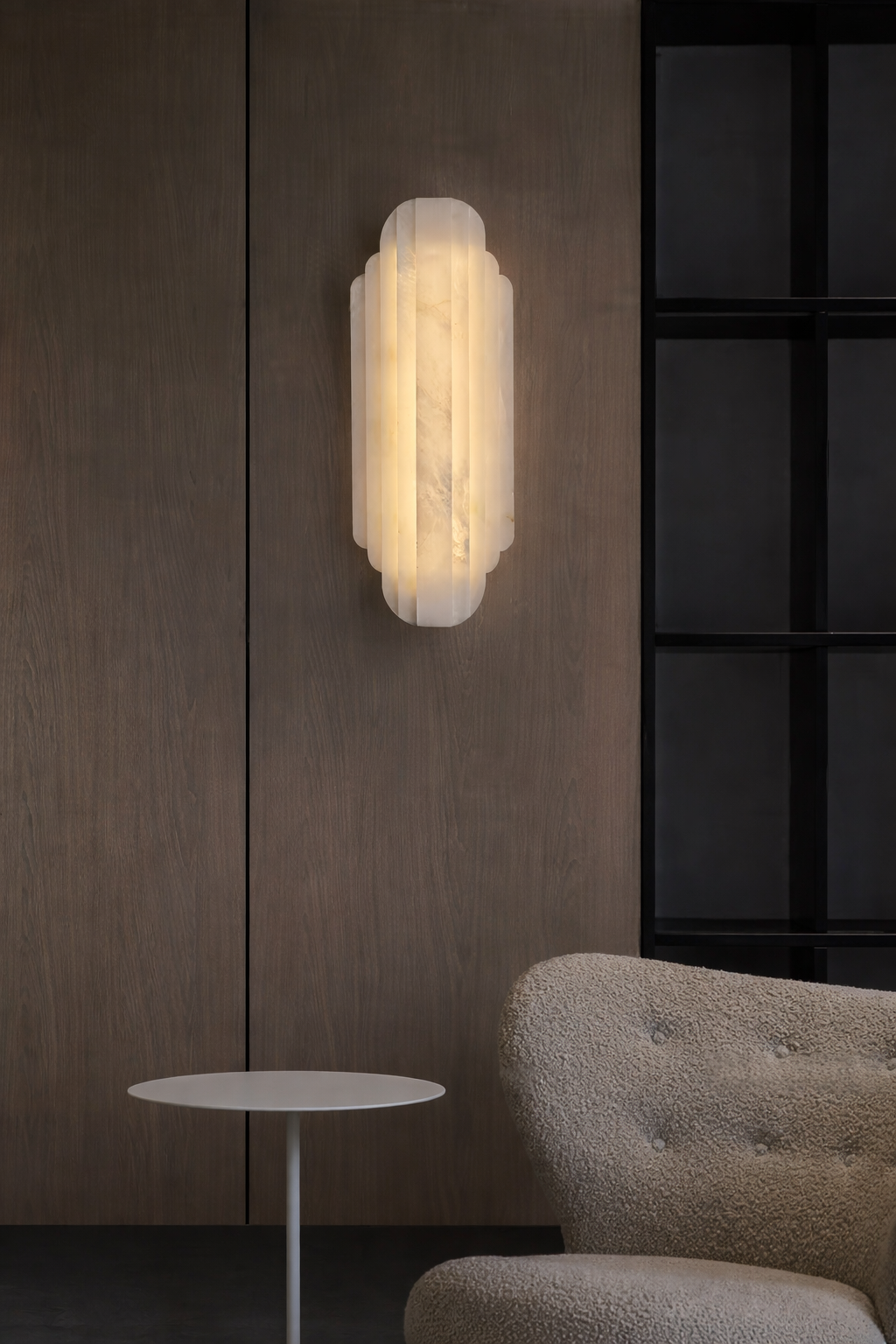 SØLVA er en elegant og stemningsfuld væglampe udført i massiv naturmarmor, hvor materialets naturlige årer og variationer gør hver lampe unik. Det skulpturelle,. . . Læs mere
